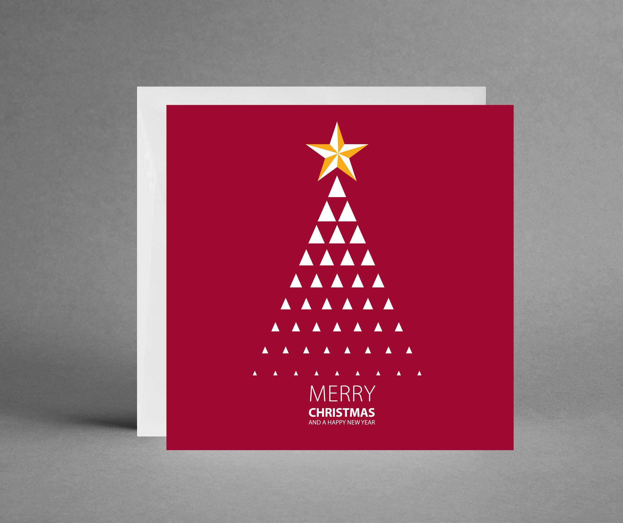 Weiterführende Links zu "GEOMETRISCHER BAUM: Dunkelrote Weihnachtskarte "Merry Christmas" inkl. Kuvert"