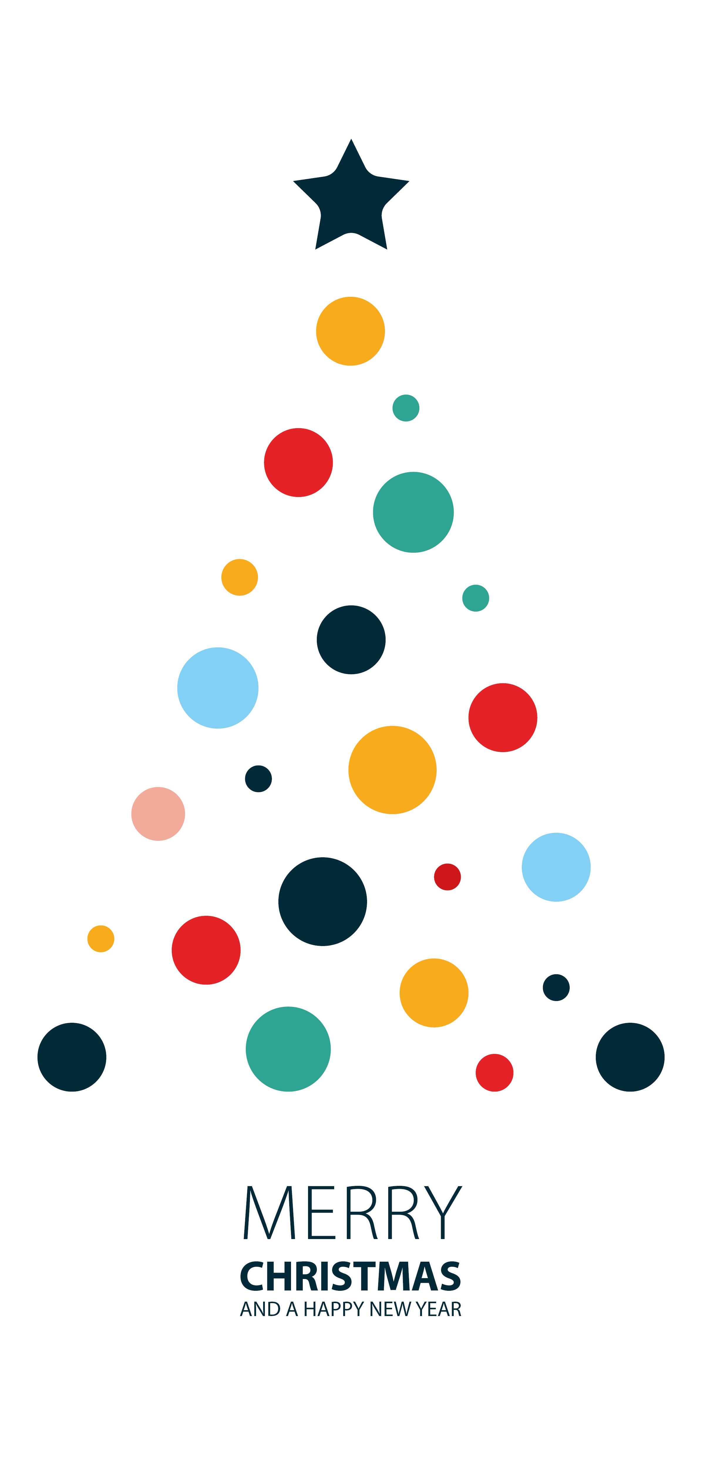 Minimalismus - Weihnachtsbaum aus Kugeln mit Schriftzug FROHE WEIHNACHTEN UND EIN GUTES NEUES... mehr