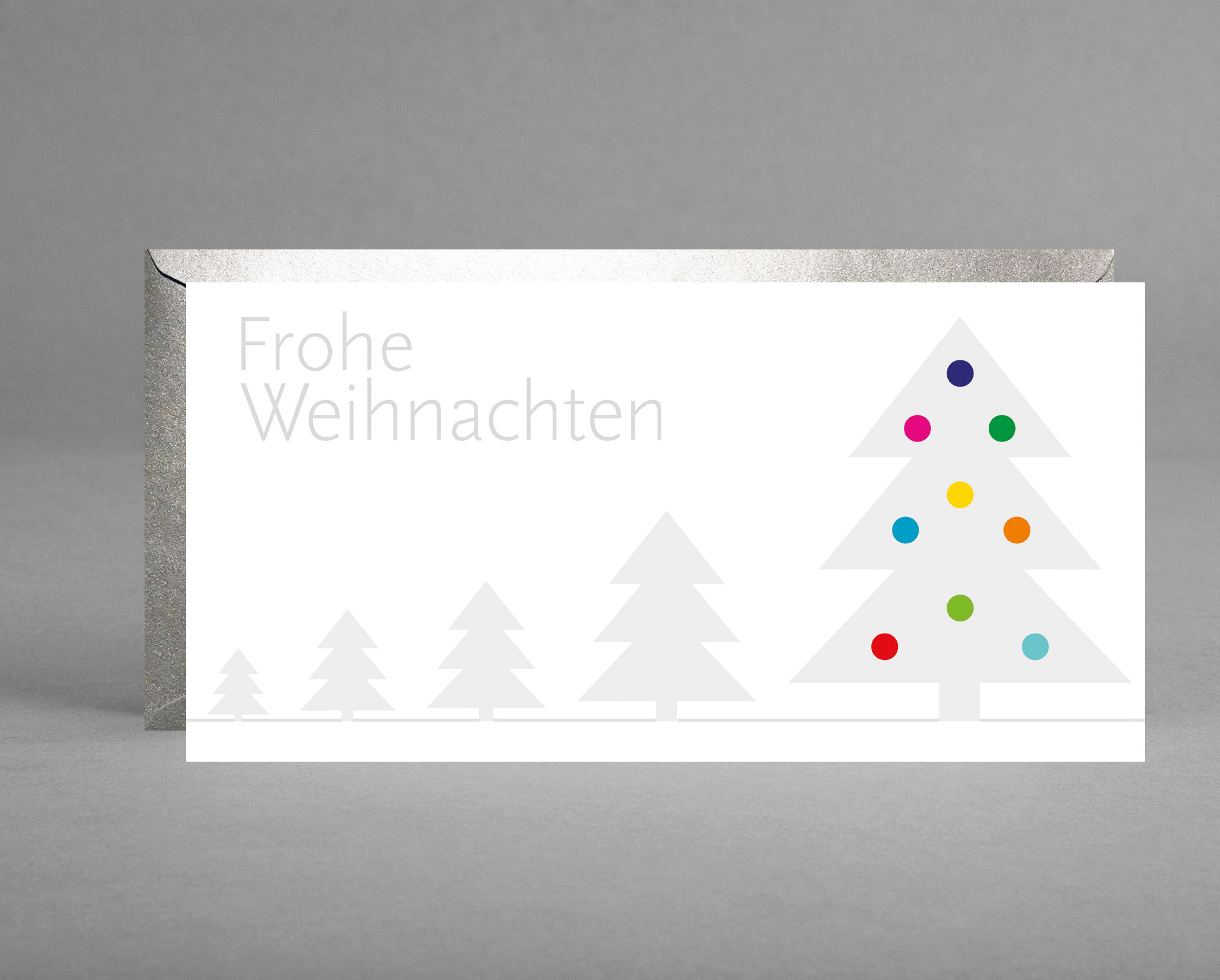 Einleger mit Text (3 Stück) mit Text bedruckt passend zu den Weihnachtskarten (208 x 103 mm), GLITZERNDE BÄUME IM SCHNEE: Weihnachtskarte Bäumen im Schnee und bunten Kugeln inkl. Kuvert- Weihnachtskarten von GRUSSKARTEN.DESIGN | GRUSSKARTEN.DESIGN Böhm+Richter GbR, 300 g Offsetkarton, ungestrichen, hohe Weiße mit Volumen, unbedruckt, Der Offsetkarton lässt sich sehr gut mit Stiften und Füller beschreiben.